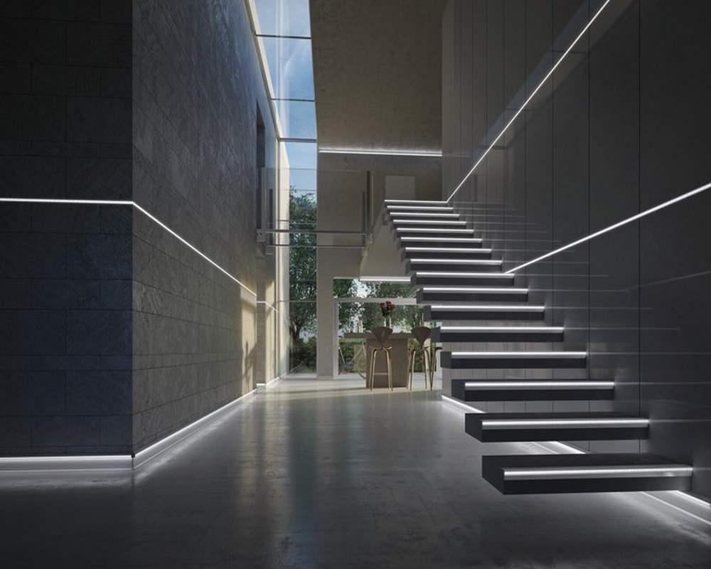 Плинтус имеет специальную матовую ПВХ вставку для светодиодной ленты. У плинтуса нет низа или верха, его можно установить той стороной, которая больше нравится: либо светодиодная лента будет ближе к полу, либо дальше от пола. Полость, где располагается лента, можно закрыть светорассеивающей вставкой, чтобы свет был мягким. Или можно оставить пространство открытым, чтобы свет был более жестким. Сама вставка идет в комплекте.