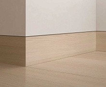 Особенности монтажа: Уложите ламинат так, чтобы его край заходил под будущий профиль, но не упирался в стену. Нанесите «жидкие гвозди» зигзагом на тыльную сторону профиля. Приклейте профиль к ровной стене прямо поверх ламината. Заштукатурьте верхнюю кромку профиля, чтобы она слилась со стеной. Зашпаклюйте и покрасьте стену как обычно.