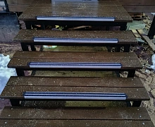 Способ монтажа: алюминиевый порожек без вставки крепится на ступени при помощи саморезов (идут в комплекте). Затем прорезиненную ПВХ вставку нужно нагреть строительным или обычным феном, либо подержать в горячей воде, чтобы материал стал мягче и легче вошел в паз профиля.